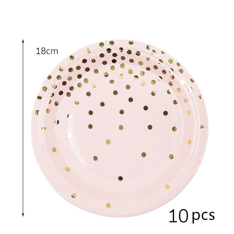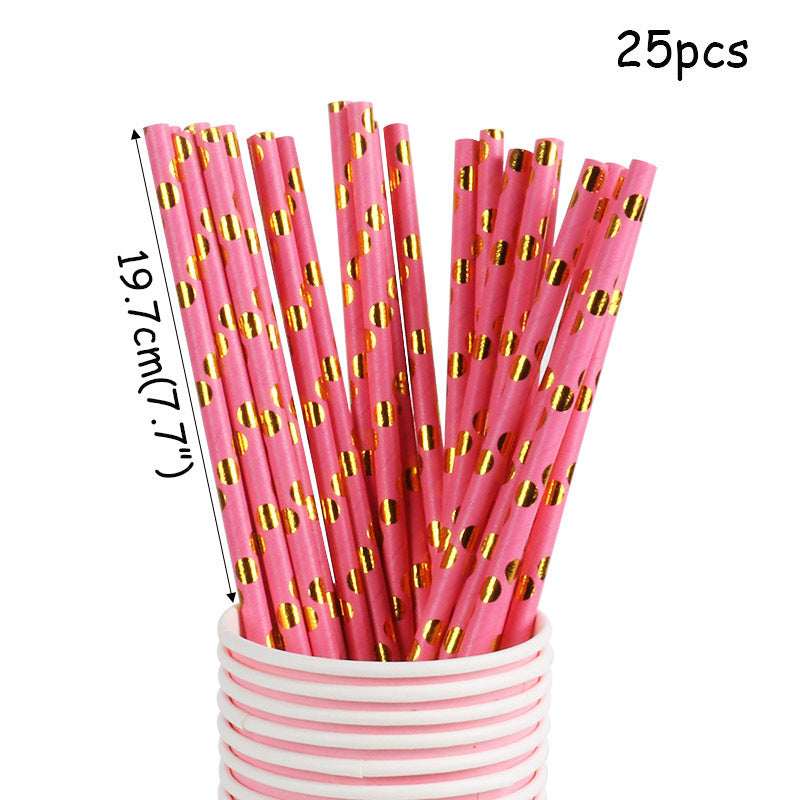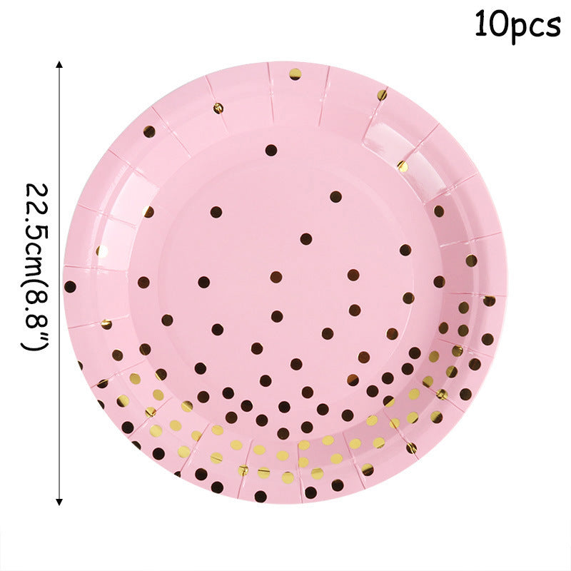 Gold dotted paper plate, Cup and Straw