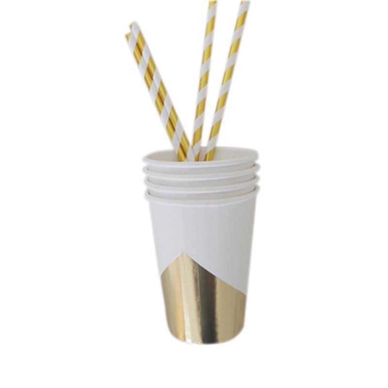 New Golden Paper Plate Cup Napkin Straw Happy Birthday Wedding Party Decor Baby Shower Disposable Tableware